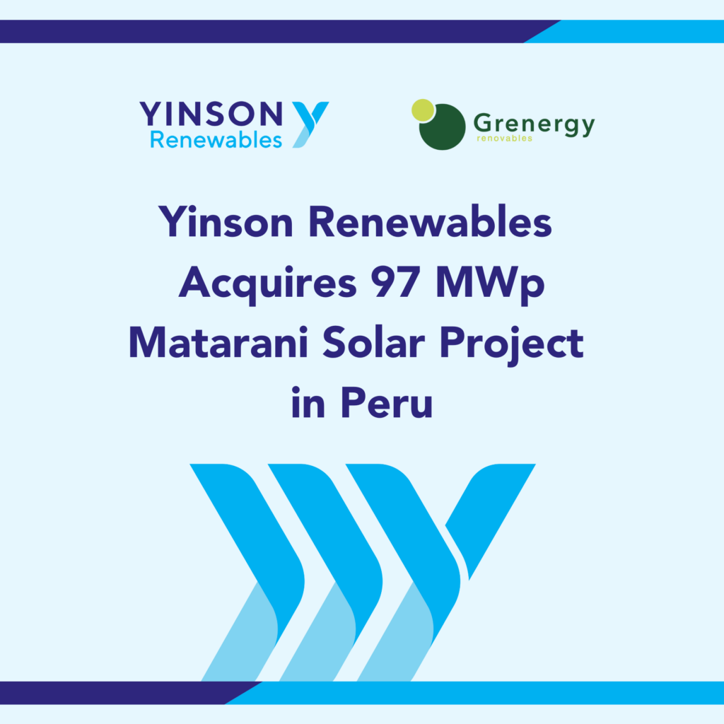 Yinson Renewables has completed the acquisition of the 97 MWp Matarani Solar Project in Peru from Grenergy Renewables (“Grenergy”), an international independent power producer, developer, and engineering, procurement, and construction (“EPC”) company with a strong track record in Latin America. The project is located in the Mollendo desert in the Arequipa region, one of the world’s highest solar irradiation areas. Most of the project’s energy has been contracted through a power purchase agreement (PPA) with a bankable off-taker for the next 15 years.